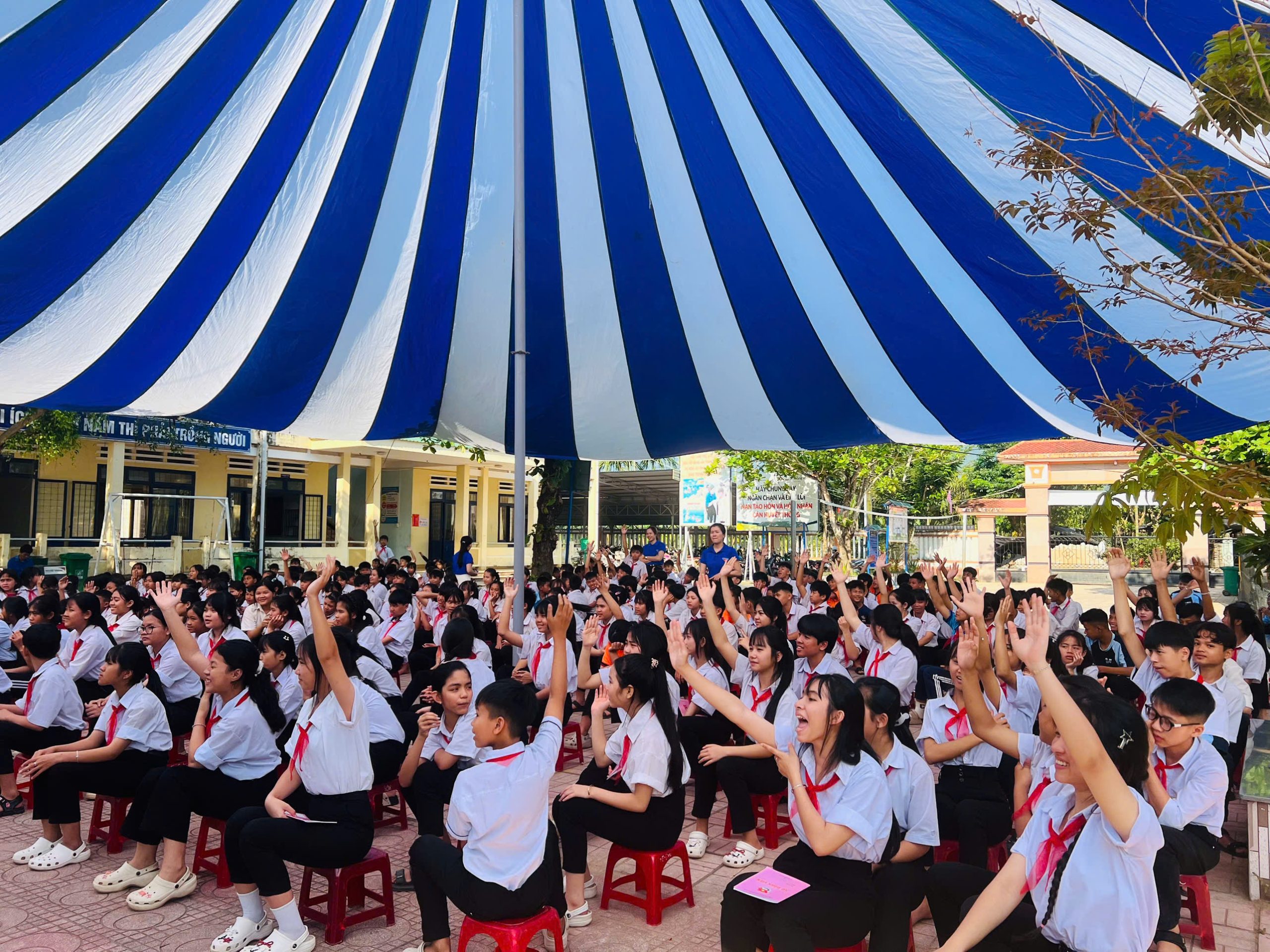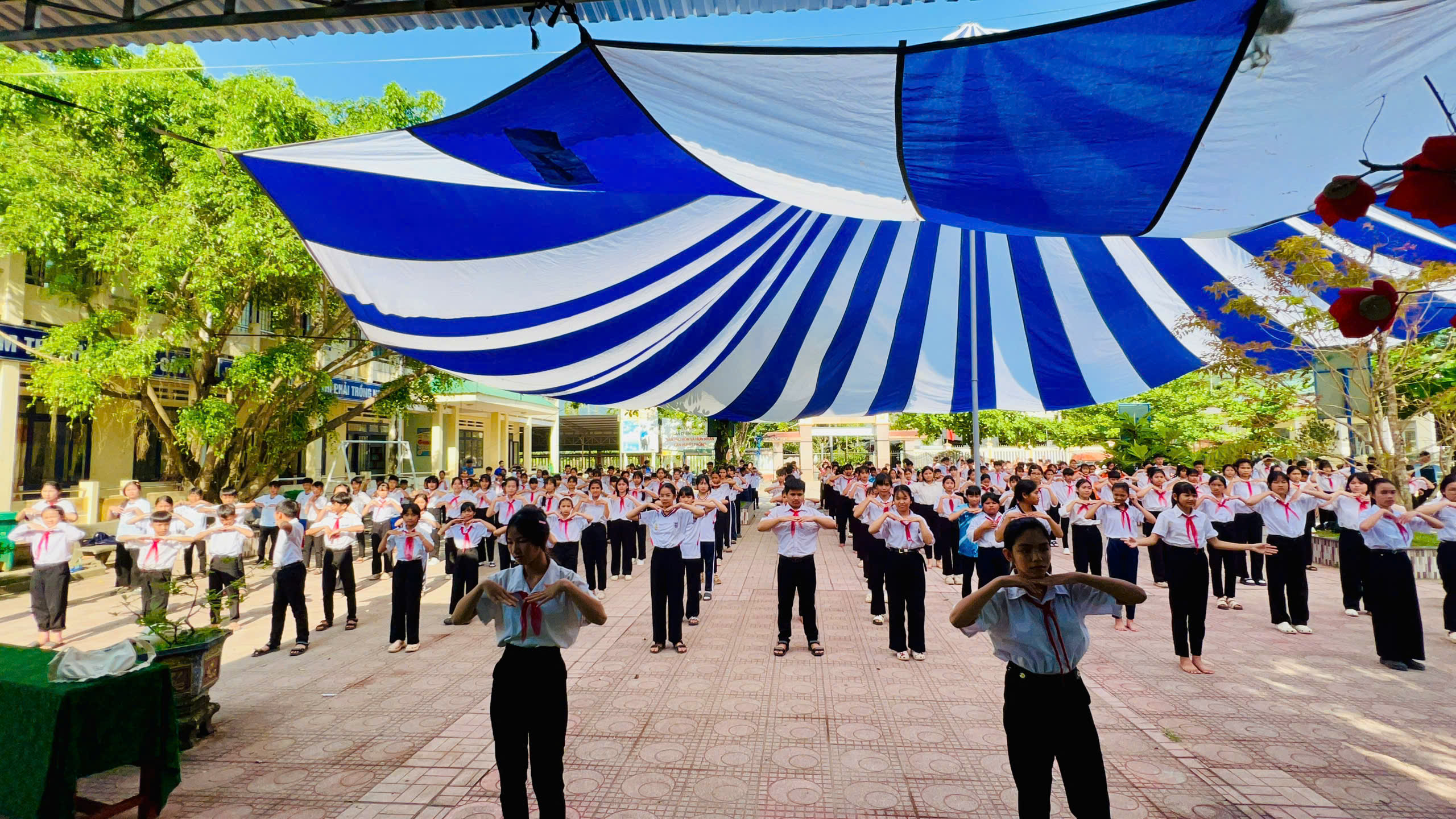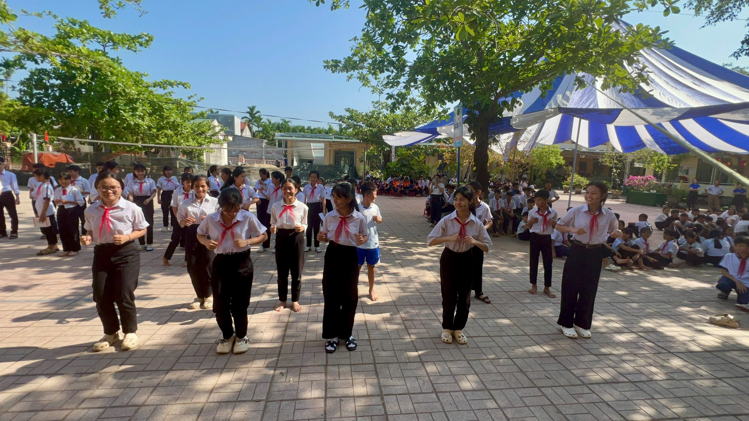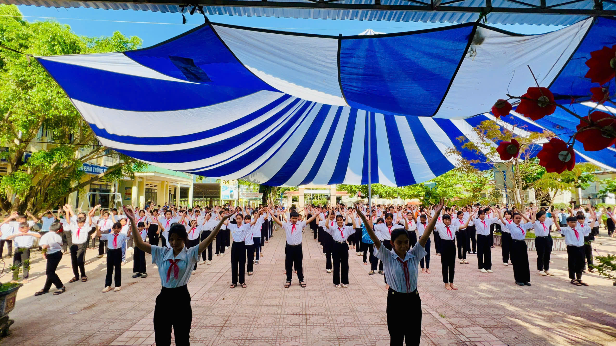 Sau phần lễ, chương trình tiếp tục với hoạt động truyền thông phòng ngừa đuối nước, góp phần trang bị những kiến thức, kỹ năng cần thiết cho học sinh. Đặc biệt, màn đồng diễn múa hát sân trường đã khuấy động bầu không khí, lan tỏa tinh thần đoàn kết, sức trẻ và niềm tự hào của học sinh toàn trường.