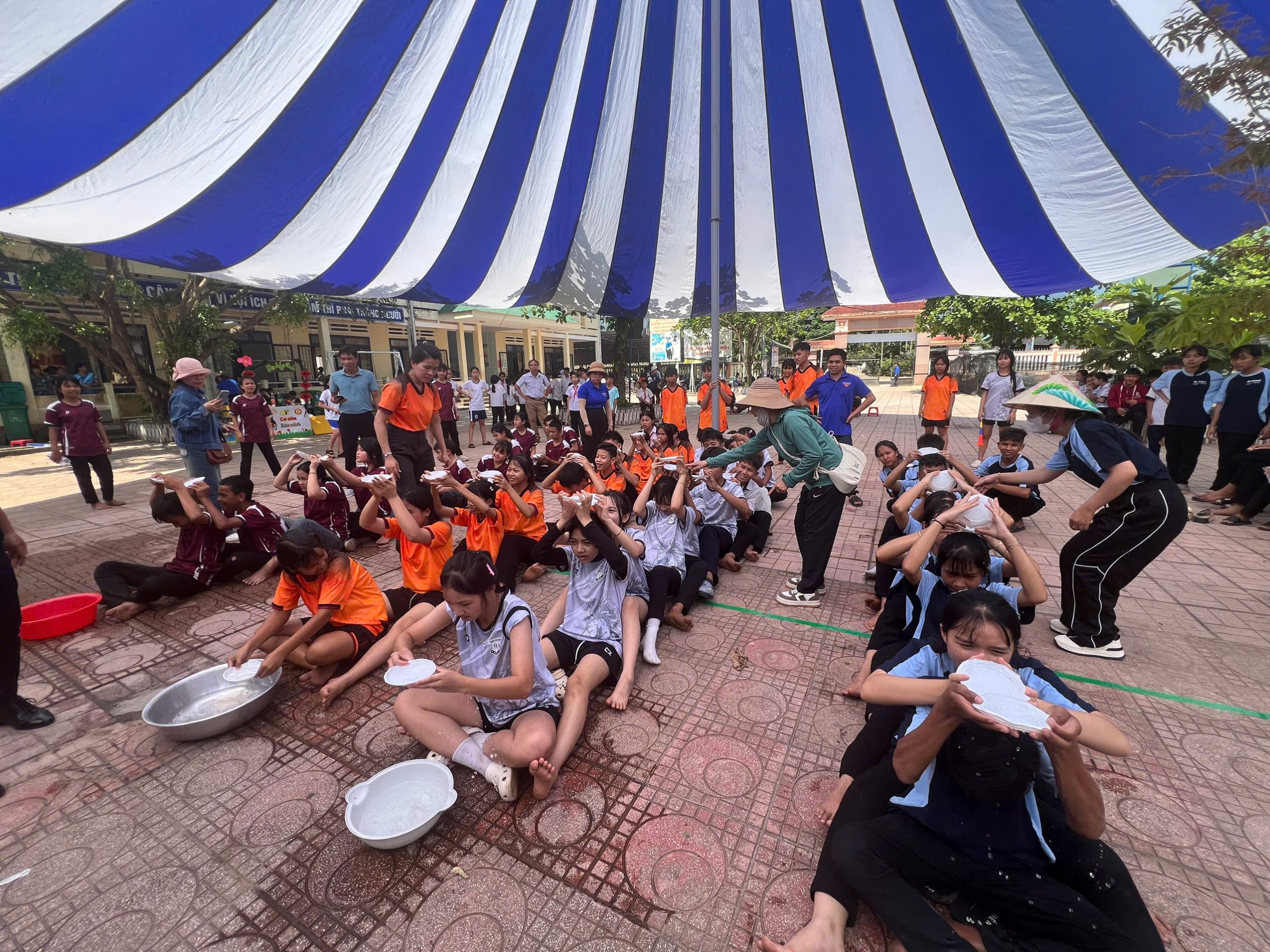 Tiếp nối chương trình, các hoạt động trò chơi tập thể và vận động đã diễn ra sôi nổi, thu hút sự tham gia nhiệt tình của học sinh các khối lớp. Những trò chơi như “Đi tìm kho báu”, “Xe tăng vào trận”, “Giọt nước yêu thương” không chỉ mang lại tiếng cười rộn rã mà còn góp phần rèn luyện tinh thần đồng đội, sự nhanh nhẹn, khéo léo và sáng tạo cho các em học sinh.
