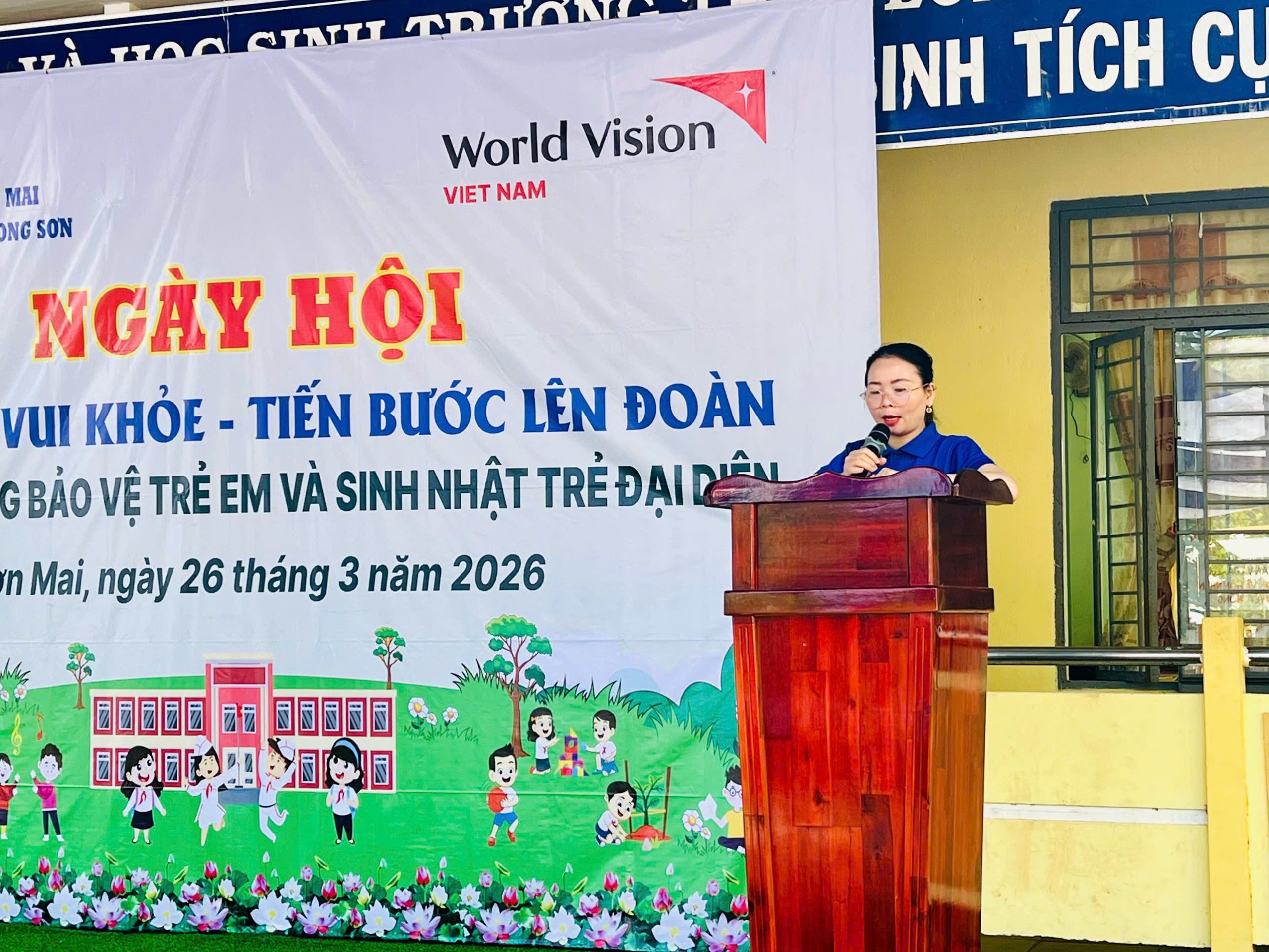 Phát biểu tại buổi lễ, cô Huỳnh Thị Thanh Tú – Hiệu trưởng nhà trường nhấn mạnh: “Ngày hội Thiếu nhi vui khỏe – Tiến bước lên Đoàn là hoạt động có ý nghĩa thiết thực nhằm giáo dục truyền thống cách mạng, bồi dưỡng lý tưởng sống đẹp cho các em học sinh. Cô mong rằng thông qua các hoạt động sôi nổi hôm nay, các em sẽ tiếp tục rèn luyện sức khỏe, phát huy tinh thần đoàn kết, tích cực học tập và phấn đấu để xứng đáng trở thành những đoàn viên ưu tú trong tương lai.”