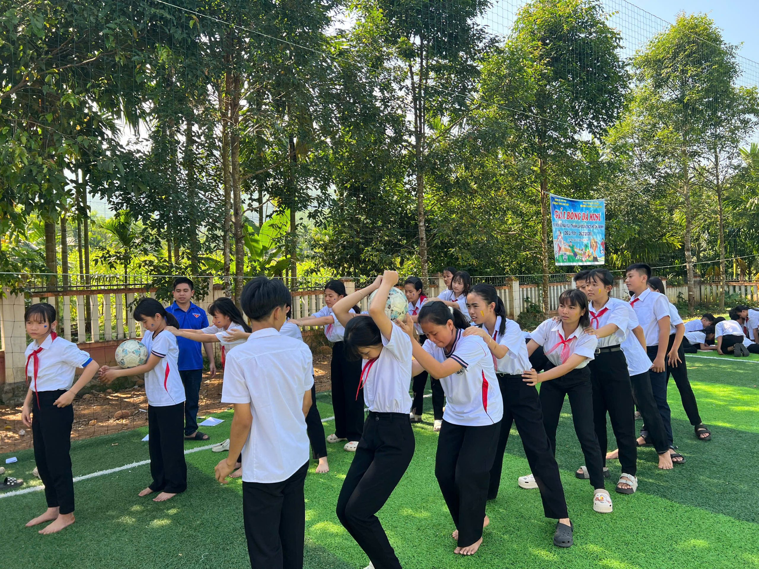 Đặc biệt, giải bóng đá mini của nhà trường đã được tổ chức bài bản và kéo dài trong nhiều ngày, khai mạc từ ngày 10/3/2026, trải qua các vòng đấu bảng đầy sôi nổi và hấp dẫn. Các đội bóng đến từ các khối lớp 6, 7, 8, 9 đã thi đấu hết mình, cống hiến nhiều trận kịch tính, thể hiện rõ tinh thần thể thao đoàn kết, trung thực và cao thượng.