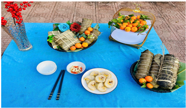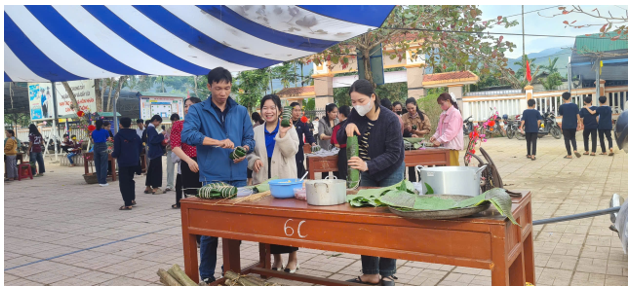 Sản phẩm được các đội nấu chín và trưng bày vào buổi chiều, thuyết trình trước Ban giám khảo, tạo nên một không gian xuân rực rỡ, giàu bản sắc văn hóa quê hương.