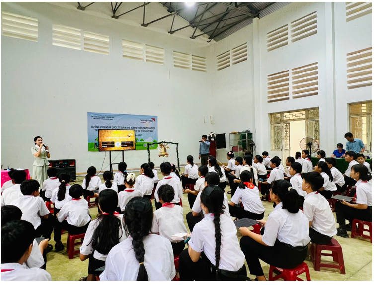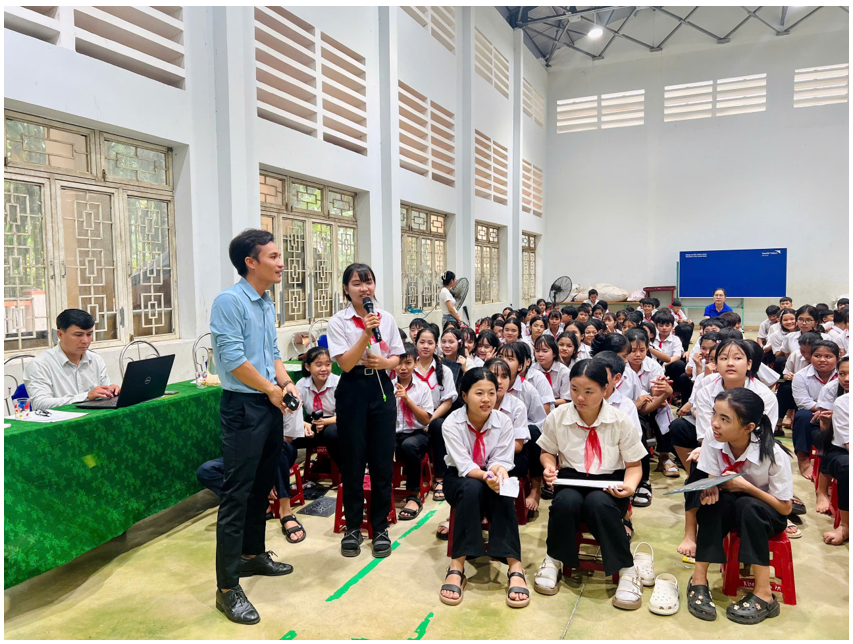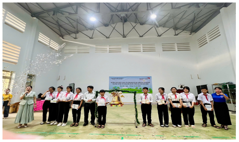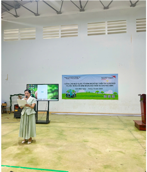 Buổi truyền thông đã thu hút sự tham gia sôi nổi của toàn thể học sinh và giáo viên, mang đến cho học sinh những kiến thức bổ ích, giúp các em hiểu rõ hơn về biến đổi khí hậu và thiên tai, từ đó hình thành kỹ năng tự bảo vệ mình, bảo vệ bạn bè và cộng đồng.