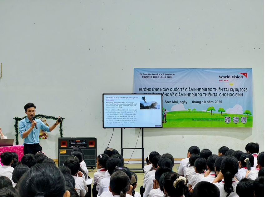Nhằm nâng cao kiến thức và kỹ năng ứng phó thiên tai cho học sinh, giúp các em biết cách tự bảo vệ bản thân, đồng thời lan tỏa tinh thần chủ động phòng ngừa, ứng phó với thiên tai trong cộng đồng. Chiều ngày 13/10/2025, Trường THCS Long Sơn đã tổ chức chương trình truyền thông về giảm nhẹ rủi ro thiên tai và biến đổi khí hậu, nhằm hưởng ứng Ngày Quốc tế Giảm nhẹ rủi ro thiên tai (13/10).